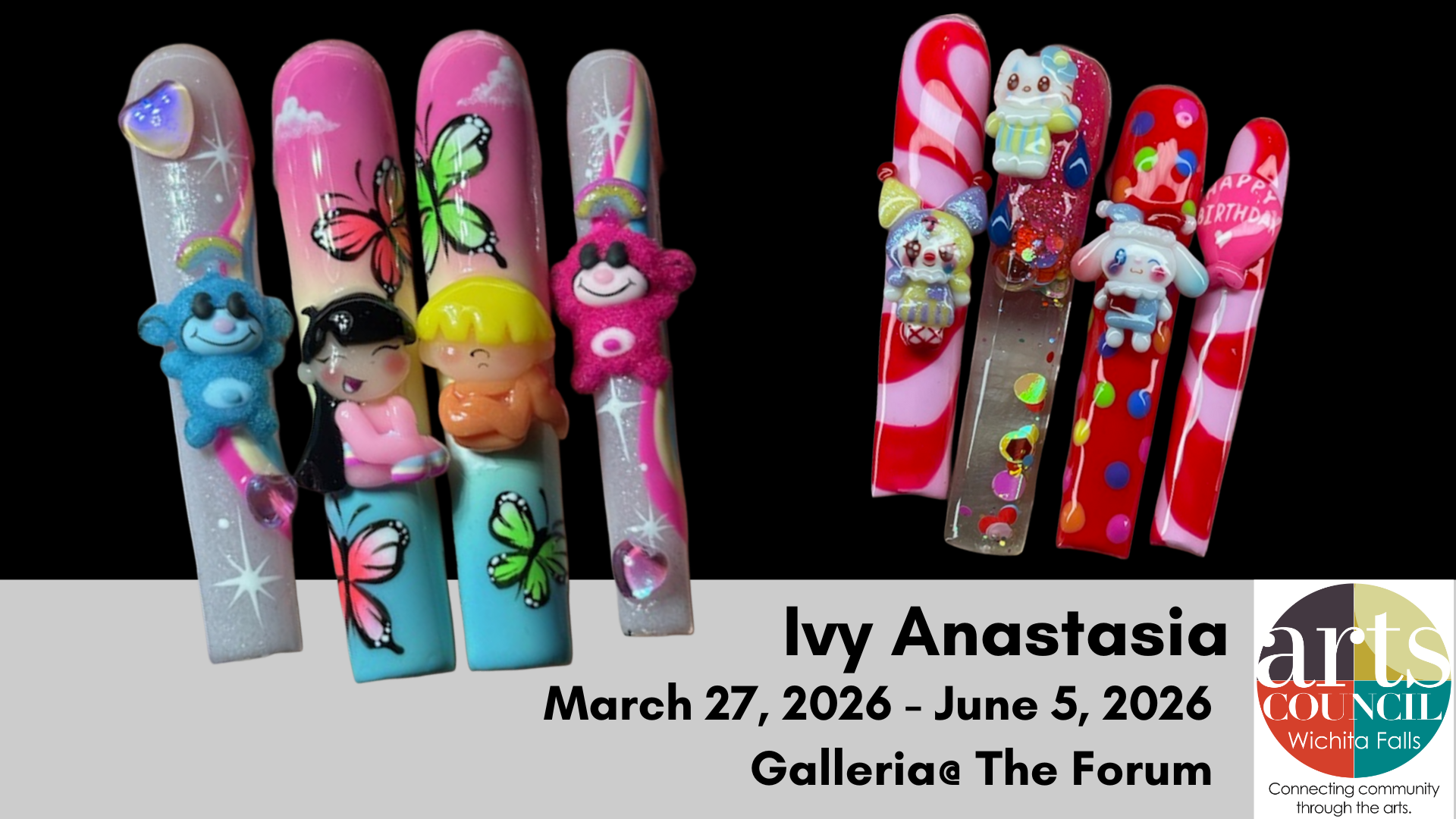 This gallery is located in our Forum building at 2120 Speedway, Wichita Falls, TX 76308. Call for further information: 940-767-2787 ext 117 or email [email protected].